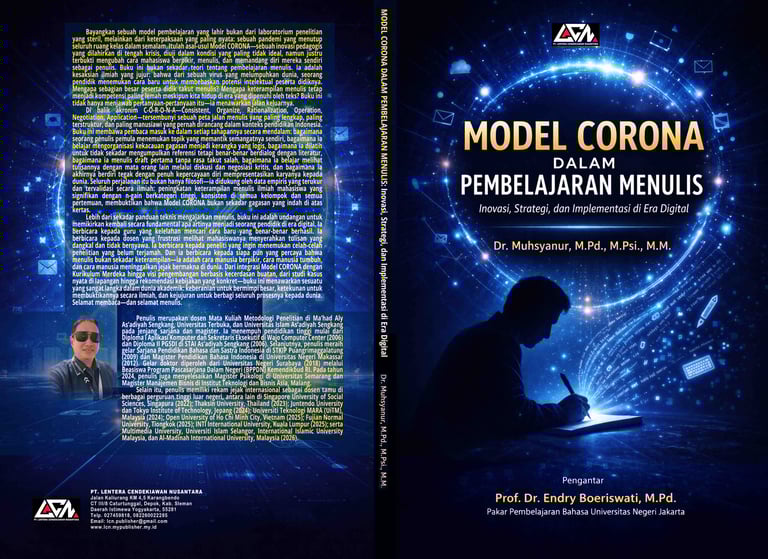 Bayangkan sebuah model pembelajaran yang lahir bukan dari laboratorium penelitian yang steril, melainkan dari keterpaksaan yang paling nyata: sebuah pandemi yang menutup seluruh ruang kelas dalam semalam. Itulah asal-usul Model CORONA—sebuah inovasi pedagogis yang dilahirkan di tengah krisis, diuji dalam kondisi yang paling tidak ideal, namun justru terbukti mengubah cara mahasiswa berpikir, menulis, dan memandang diri mereka sendiri sebagai penulis. Buku ini bukan sekadar teori tentang pembelajaran menulis. Ia adalah kesaksian ilmiah yang jujur: bahwa dari sebuah virus yang melumpuhkan dunia, seorang pendidik menemukan cara baru untuk membebaskan potensi intelektual peserta didiknya. Mengapa sebagian besar peserta didik takut menulis? Mengapa keterampilan menulis tetap menjadi kompetensi paling lemah meskipun kita hidup di era yang dipenuhi oleh teks? Buku ini tidak hanya menjawab pertanyaan-pertanyaan itu—ia menawarkan jalan keluarnya.